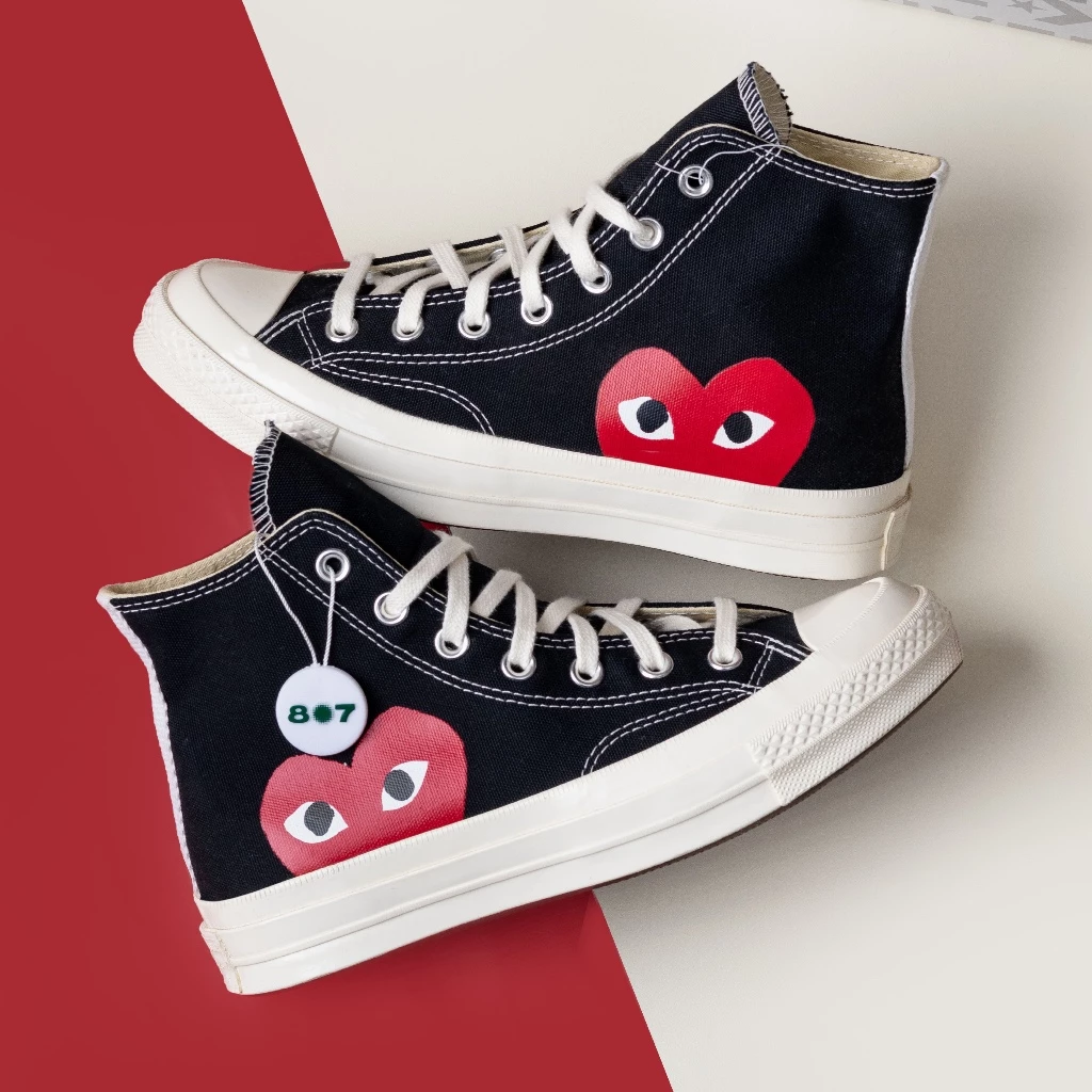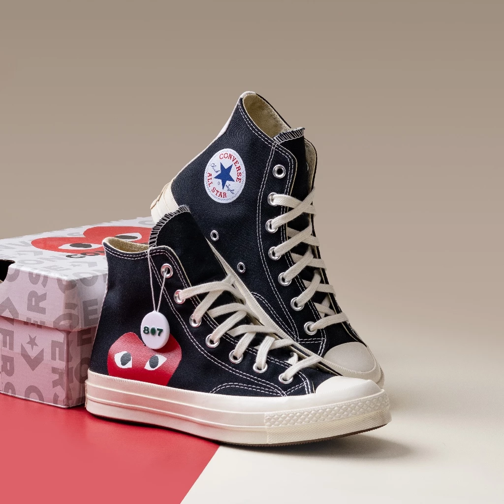 Converse CDG Play High Black merupakan sneakers kolaborasi Converse dengan Comme des GarΓ§ons. Menggunakan kanvas premium, nyaman dipakai sehari-hari dan cocok untuk gaya streetwear maupun casual.